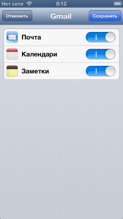 При подключении аккаунта от Google, как обычно для айфона, его лучше не подключать как Gmail, потому что при этом не будут синхронизироваться контакты.