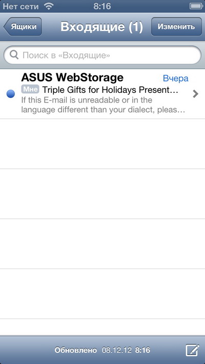 Почта практически не изменилась, и для нее увеличение дисплея ничего не дает - разве что в список заголовков писем помещается на один больше.