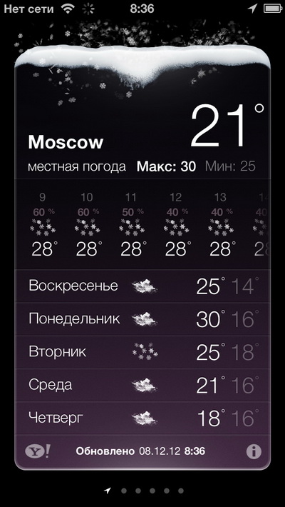 Психоделично смотрится скриншот с погодой: снежная шапка, снежинки, в прогнозе для Москвы снегопад и температура 21 градус. Знак минуса они принципиально не рисуют или это температура в градусах Фаренгейта?