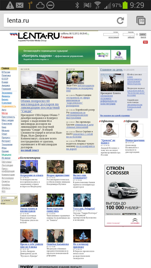 В айфоне в портретном режиме на том же сайте Lenta.ru ничего толком прочитать нельзя, а на Note II - можно.