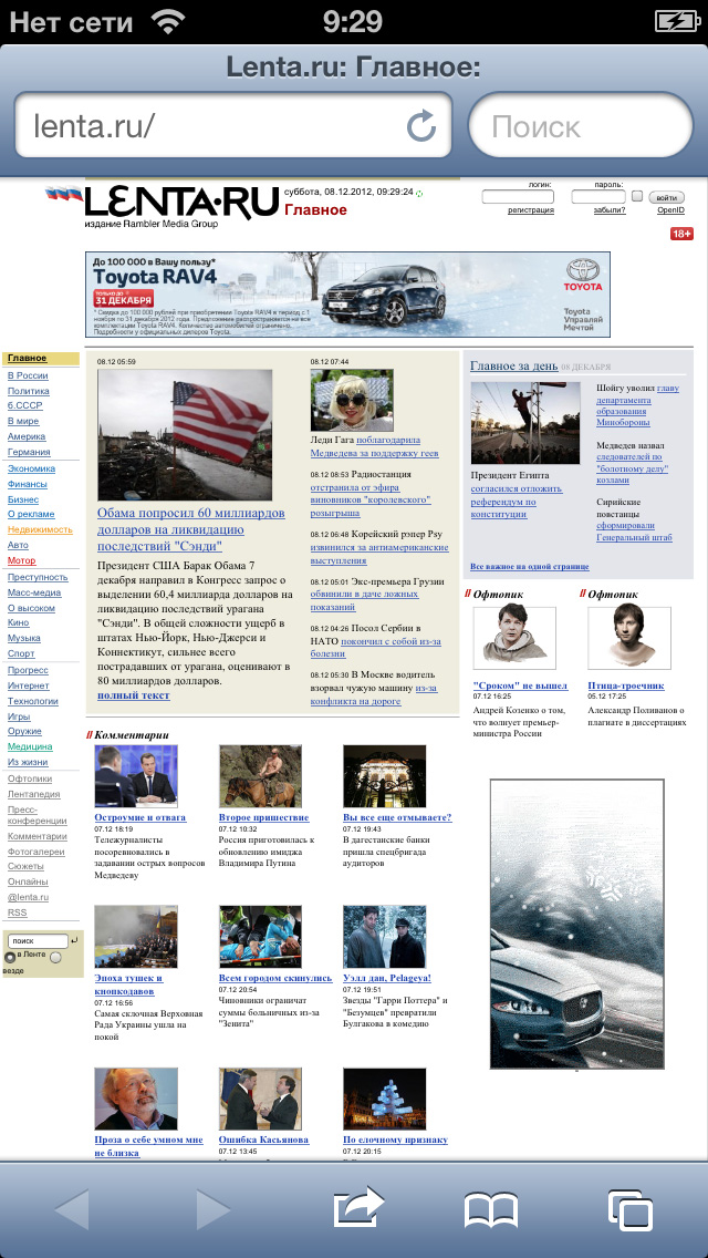 Вот, посмотрите страничку Lenta.ru в этом iPhone.