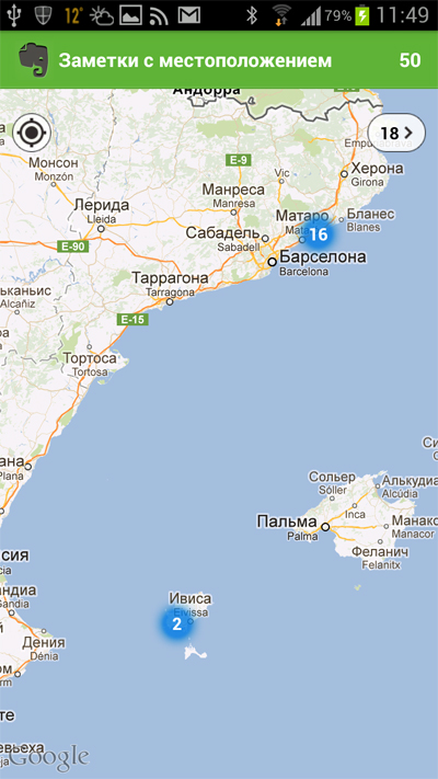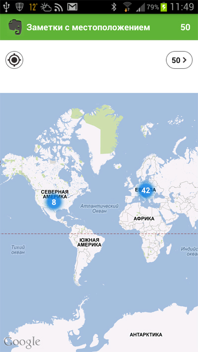 Когда заметки пишутся в телефоне-планшете, Evernote умеет сохранять в ней данные о вашем местонахождении (если вы это, конечно, разрешите), также при написании заметки на компьютере можно вручную указать координаты.