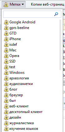 Метки - при создании или редактировании заметки в специальное поле можно вписать метки, облегчающие дальнейший поиск и отбор. (Однако даже если вы их не впишете, Evernote сама проанализирует текст и подберет соответствующие метки - при копировании страниц веб-клиппером.)