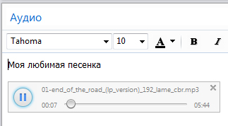 Приложенное к заметке аудио имеет специальную пиктограмму воспроизведения, и этот трек можно запускать прямо из заметки.