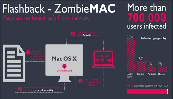 В настоящий момент заражено порядка 700 тысяч компьютеров пользователей с OS X (58% этих пользователей проживают в США).