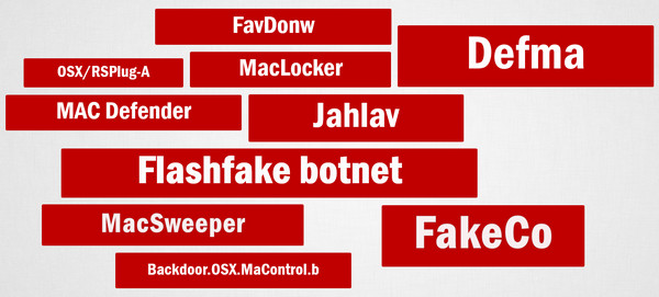 Вот набор различных видов Malware, которые реально заражали большое количество компьютеров пользователей OS X.