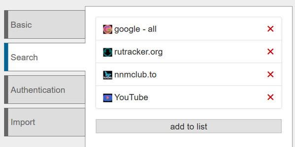 В разделе Search можно добавить дополнительно поиск по торрент-трекерам - полезная штука. Список пока там маленький, только Rutracker и NNMClub, но я думаю, что скоро расширят. (Лично меня больше всего интересует включение туда Kinozal.tv.)