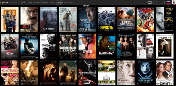 Очень интересно реализован рекомендательный сервис "оракул", который выдает предложения на просмотр на основе ваших предпочтений. И чем больше фильмов вы отметите, тем более подходящими будут рекомендации "оракула".