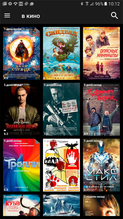 По умолчанию там вам показывают обложки фильмов и сериалов по нескольким различным категориям: ожидается в кино, скоро в кино, сейчас в кино, ожидают релиза, доступен релиз, самые популярные (из вышедших фильмов и сериалов), доступен "черновой" релиз.