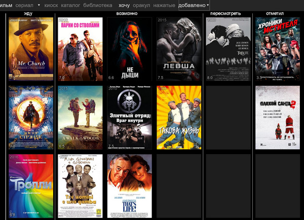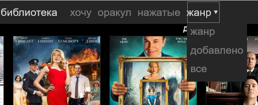 В разделе "библиотека" показывают все фильмы, которым вы поставили оценку "хорошо" и выше. При этом с помощью выпадающей менюшки справа эти фильмы можно раскладывать по жанру, дате добавления, по оценкам (пункт "все"), также можно сравнивать с оценками ваших друзей.