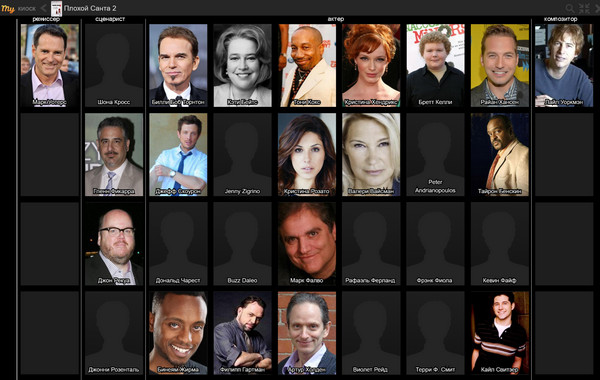 Кроме описания есть закладка "Персоны", при нажатии на которую очень наглядно выводятся участники картины. (Также на фамилии можно щелкать в карточке фильма.)