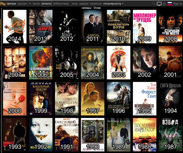 Вот, например, все оскарные фильмы по годам - лично мне такой формат отбора очень актуален!