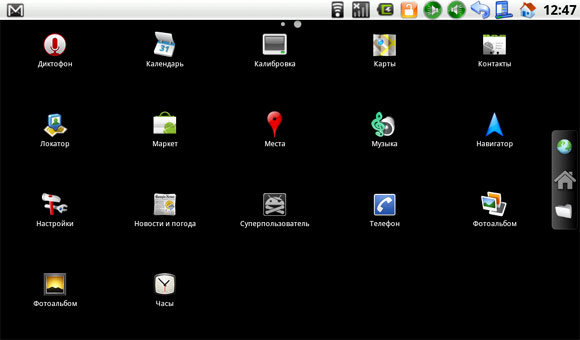 Стартовый десктоп сразу поражает продуманностью и богатством выбора.
