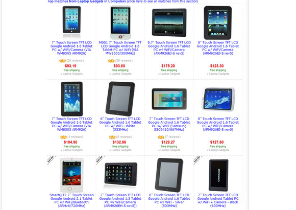 Первыми, как водится, откликнулись китайцы. Они понавыпускали кучу планшетов, цена которых лежит в диапазоне от $70 до $300. Большинство этих планшетов внешне имитируют iPad, хотя устанавливается в них операционная система Android 2.1. Те, которые iPad не имитируют, могут содержать кнопки управления в самых неожиданных местах - например, на задней крышке.