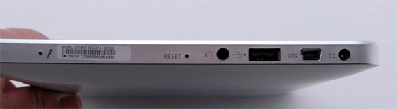 На нижнем торце - микрофон, reset, выход на наушники, USB, miniUSB, питание.