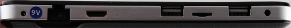 Правый торец - вход адаптера питания, Ethernet, miniHDMI (переходник в комплект не входит), USB 2.0, microSD, USB 2.0, наушники.