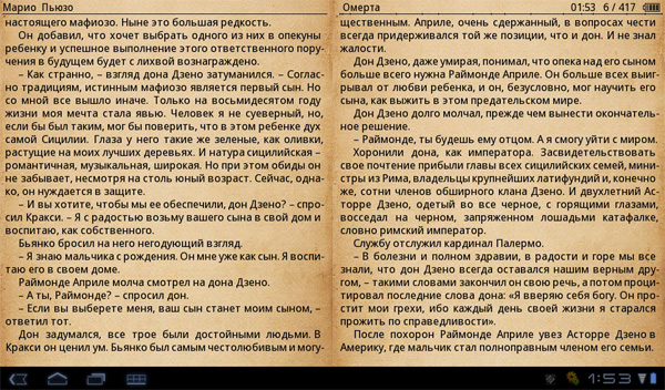 Скачал и установил CoolReader, посмотрел, как читаются разные книжки. Тут, разумеется, все нормально. Однако очень мешают эти жуткие углы обзора - стоит только чуть отклонить планшет, уже ни черта не видно. Впрочем, это мешает в любых приложениях.