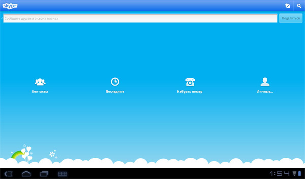 Установил дурацкую версию Skype для планшетов. (Что им стоило сделать такую же, как для обычного компьютера, - непонятно.) Работает. Видео не работает. Так что камера с прекрасным разрешением в 0,3 Мпикс осталась невостребованной.