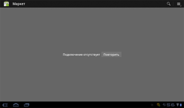Еще меня очень порадовала работа Android Market на этом планшете. Два дня он проработал. Но в какой-то момент стал выдавать вот такую картинку.