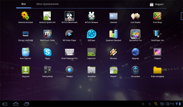 Android 3.2 тут установлен совершенно пиратским образом, поэтому в комплекте не было даже Android Market, а установленных приложений было примерно раза в два меньше, чем, например, в Samsung Galaxy Tab 10.1.