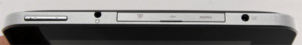 На правом торце - регулировка громкости, выход наушников, слот SD-карты, USB, HDMI и выход адаптера питания.