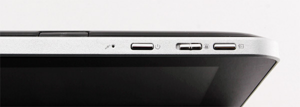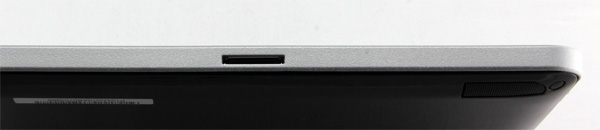 На верхнем торце справа - кнопка "Возврат" (зачем-то), блокировка положения экрана, питание, микрофон. На задней крышке какая-то странная заглушка - судя по всему, это отсутствующий слот для SIM-карты.