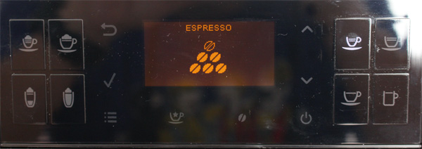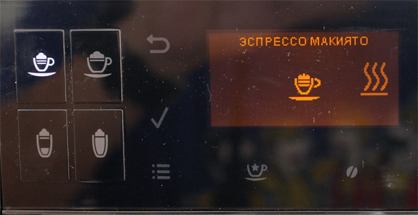 Справа - четыре кнопки приготовления: эспрессо, Cafe Creme, обычный кофе, кофе американо.