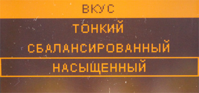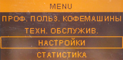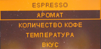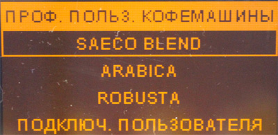 Далее пошел в настройки (меню). Эта кофемашина умеет сохранять профили шести пользователей, и по каждому виду кофе (смешанный, арабика, робуста) можно задавать свои собственные параметры.