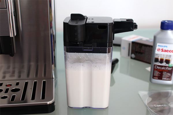 Налил молоко в специальный двухкамерный кувшин. (У них на сайте и в инструкциях он почему-то смешно именуется "графином".)