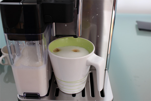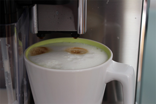 Ну и проверил, как делает кофе латте (у нас его почему-то произносят как "латтЕ" на французский манер, но в Италии и Испании этот вид кофе называют "лАтте").