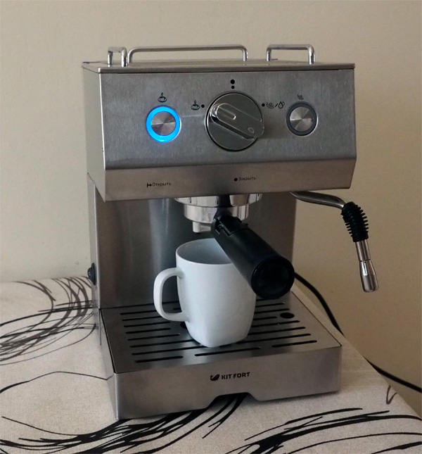 Итак, помповая рожковая полуавтоматическая эспрессо-кофеварка Kitfort KT-701, встречайте!