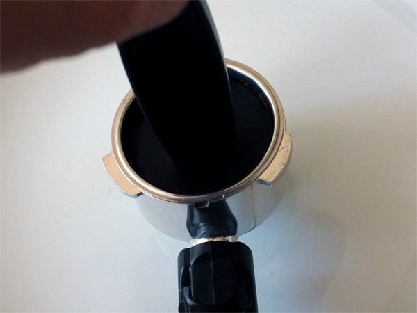 После того как засыпали кофе, обратной стороной ложки нужно разровнять порошок, для чего на него нужно несильно надавить.