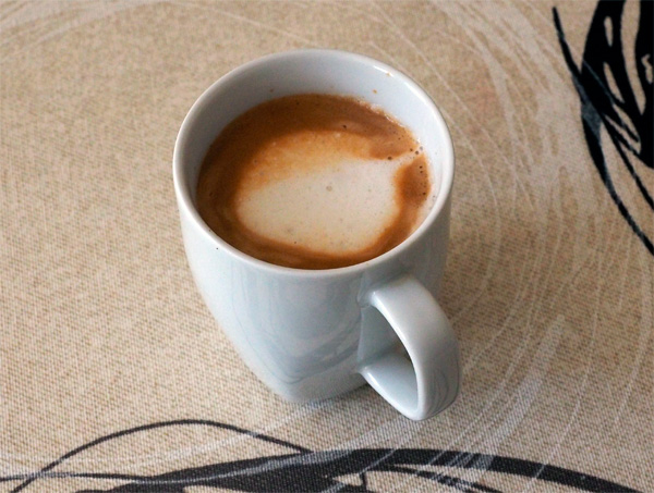 Ну и все, чашка эспрессо (в моем случае) готова. Кофе, как полагается, имеет плотную пенку, на вкус совершенно ничем не отличается от кофе, полученного в моей навороченной кофемашине. И я не почувствовал никакого отличия от эспрессо, приготовленного в профессиональных итальянских кофемашинах, которое подается в кафе. (Наоборот, там нередко попадается кофе, что называется, не фонтан, но понятно, что это зависит от используемых кофейных зерен.)