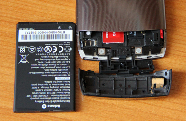 Задняя крышка - несъемная. Чтобы поставить SIM-карту или SD-карту, нужно снять нижнюю панель, открыть защелку и вытащить аккумулятор. Таким образом, "горячая" замена симки или SD здесь не предусмотрена, однако я не припомню ни одного случая, чтобы мне это понадобилось.