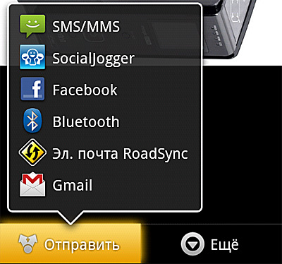 Галерея изображений - также стандартная. Группировка по датам или по папкам, слайд-шоу, различные виды отправки (онлайновые сервисы, социальные сети).