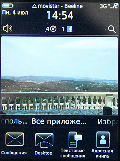 Ниже - меню приложений и пиктограммы приложений. Это все можно пальцем натягивать на обои, если они вам надоели, и тогда десктоп выглядит вот так.