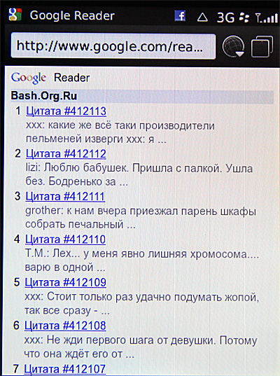 Мобильная версия Google Reader