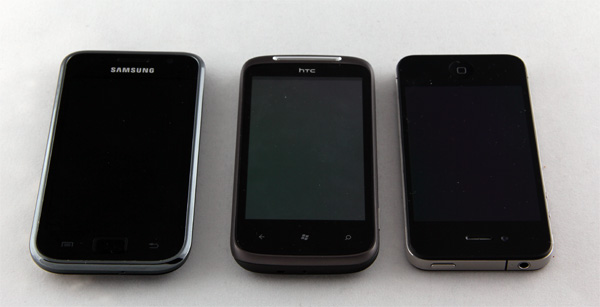 Samsung Galaxy S, HTC 7 Mozart, iPhone 4