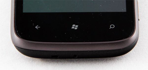 Из остальных кнопок - сенсорные три кнопки, требуемые спецификацией Windows Phone 7: домой, возврат, поиск.