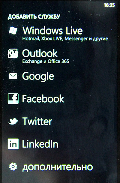 Как и ранее для операционной системы Windows Mobile, учетную запись Google лучше подключать через Exchange, а не через "Почта Google" - в этом случае и контакты, и календарь, и почта будут синхронизироваться через Push по беспроводной связи. В противном случае контакты можно будет синхронизировать только через Zune.