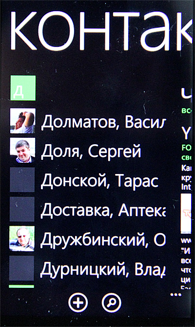 Контактами пользоваться очень удобно - пожалуй, это самое удачное решение из всех мобильных операционок.