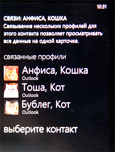 4. Про синхронизацию контактов я не был в таком же восторге... Ребята, если у вас нет аккаунтов в гугле, фэйсбуке и пр., то обломитесь по полной программе! Даже с Outlook-ом на собственном компе вы не синхронизируетесь, как раньше, без интернета! ...В принципе!... Только заливать контакты на Windows Live (читать ВиндаСлив!) Это гнусная идея (ИМХО)... Лично я ни разу не хочу выкладывать свои контакты в какую-либо "СоцСеть", просто по соображениям безопастности.
