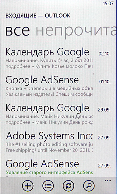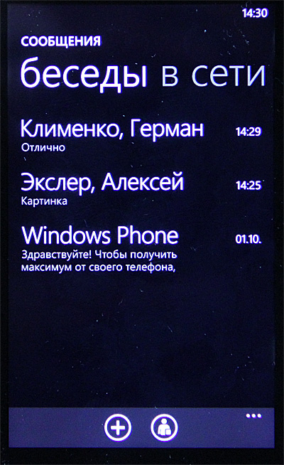 Сразу извинюсь за качество иллюстраций - к сожалению, для Windows Phone 7 пока нет никаких способов делать нормальные скриншоты. Приходится фотографировать, а это и реально трудоемко, и качество получается паршивое. Не очень понятно, почему в MS не озаботились возможностью делать скриншоты - хотя бы через SDK, как в Android. А еще лучше - комбинацией клавиш, как в iOS. Без этого обозревателям приходится очень сложно, а читателям приходится еще сложнее - вместо ярких четких скриншотов приходится смотреть на мутные фотографии и вспоминать при этом анекдот о том, как одна тетка, возвратясь из поездки, показывала мужу, что такое стриптиз.
