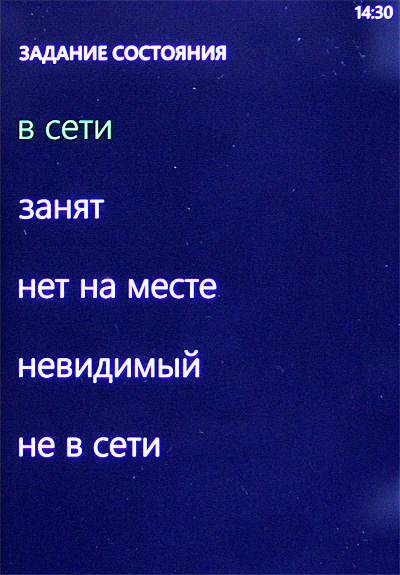 Ну и третья страница - ваш статус в сети: на линии, занят и так далее.