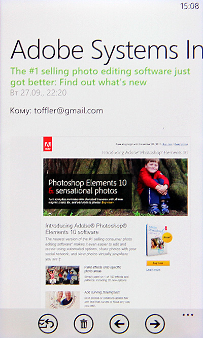 Одно тут плохо: при отправке изображения вместе с письмом оно автоматически сжимается до размера 640х480 пикселов, что на самом деле явно маловато. В той же iOS при отправке изображения вы можете выбрать между тремя размерами, включая оригинальный. Здесь такого, к сожалению, нет.