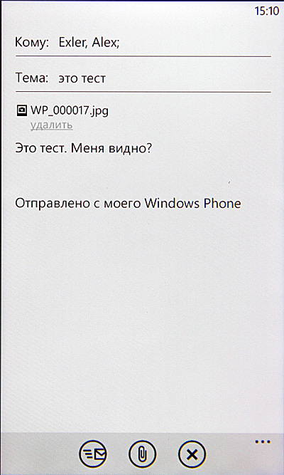 При создании письма вы можете к нему приложить изображение, взятое из альбомов телефона или непосредственно сфотографированное.