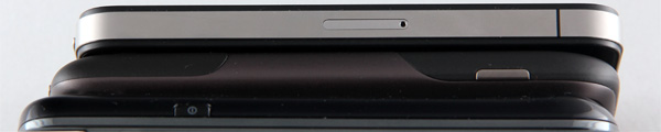 Кнопка питания - на верхнем торце справа, там же слева - выход для наушников. На правом торце - кнопка вызова камеры.
