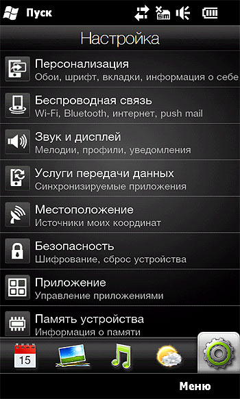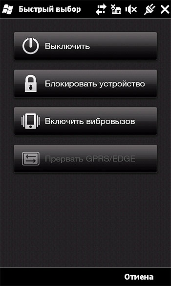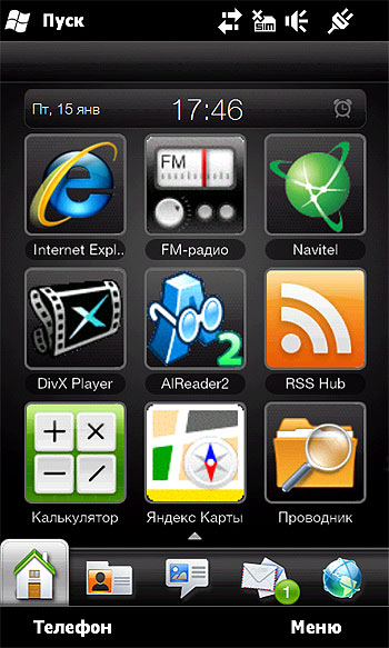 Кстати, в этой прошивке почему-то пропала традиционная для HTC пиктограмма диспетчера задач. И без нее - реально очень даже паршиво, особенно учитывая традиционный идиотизм Windows Mobile, когда запущенное приложение нельзя закрыть, а можно только минимизировать. Ну и учитывая тот факт, что на панель пиктограмм диспетчер задач поставить почему-то нельзя.