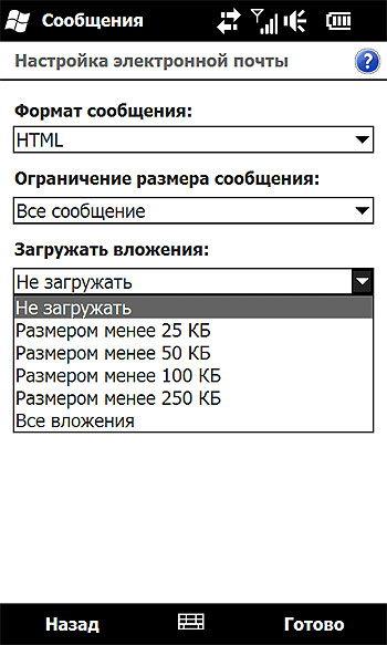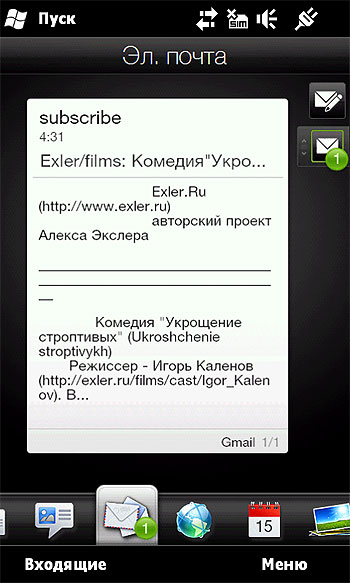 SMS-сообщения здесь также свои собственные, HTC-ные, и они намного удобнее, чем стандартные в Windows Mobile.