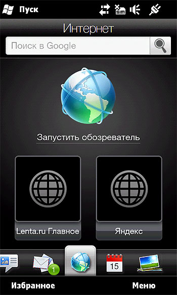 Пятая - Интернет. Там поиск, вызов браузера и две пиктограммы для основных закладок.